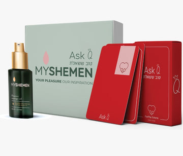 המארז כולל שמן הפלז'ר ולונגר פלז'ר לגברים וערכת הקלפים לזוגיות של ASK Q